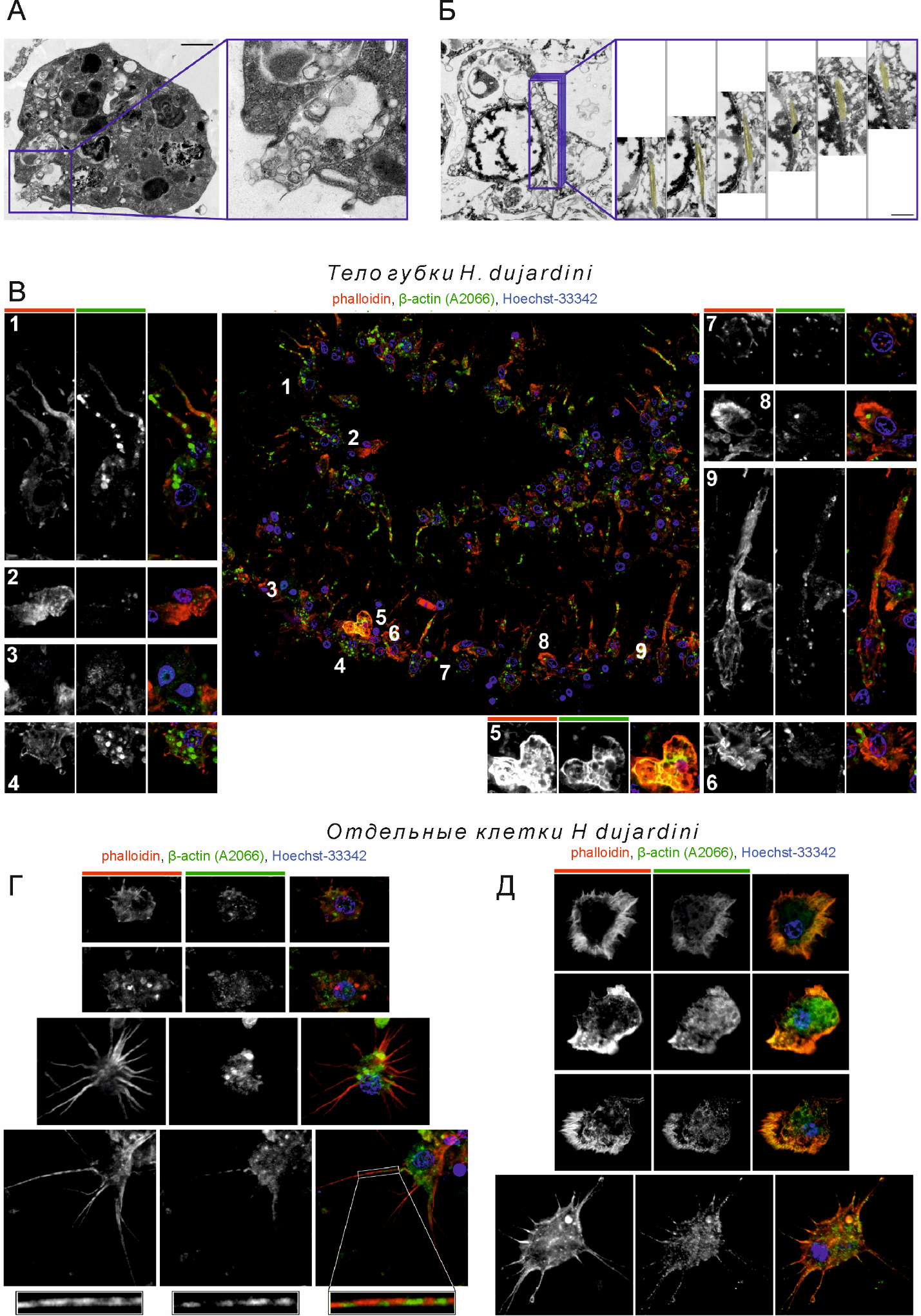 Научные интересы: молекулярная генетика дрозофилы. Возникновение многоклеточности тесно связано с эволюцией механизмов адгезии и взаимодействия между клетками. Способность клеток к объединению является ключевой на ранних этапах эмбрионального развития и регенерации у животных. У большинства животных формирование in vivo нового целостного организма из суспензии диссоциированных клеток не происходит, однако некоторые виды реализуют это удивительное свойство. Особенно примечательны в этом отношении губки (тип Porifera), способные к созданию новой особи после диссоциации тела на отдельные клетки [1]. Во время самосборки клеточных агрегатов клетки губок активно двигаются и претерпевают многочисленные трансформации. Помимо губок, способность к полной или частичной регенерации демонстрируют такие организмы, как гидры, планарии и асцидии, а также эмбриональные клетки рыб, земноводных и пресмыкающихся. У млекопитающих процессы самосборки и реагрегации клеток лежат в основе технологий выращивания органоидов in vitro. Одним из ключевых белков в реализации этих процессов является белок цитоскелета – актин, участвующий в подвижности клеток, адгезии, поляризации и сигнализации. Известно, что актин может находиться в двух формах: мономерной (G-актин) и филаментной (F-актин), а его динамика контролируется рядом факторов, включая уровень АТФ, различные ионы и специфические актин-связывающие белки. Считается, что в структуре генов актина существует скрытый код, который контролирует функциональное разнообразие изоформ актина [2]. Эукариотические актины имеют очень похожие аминокислотные последовательности и различаются на уровне нуклеотидов, особенно в их экзонно-интронной организации. Гетерологичные изоформы актина позволяют цитоскелету динамично реагировать на внешние воздействия, сохраняя жизнеспособность клеток. Экспрессия изоформ актина на уровне белка у млекопитающих тканеспецифична. Немышечные клетки млекопитающих экспрессируют β- и γ-актин, которые практически идентичны (99%), но локализованы в разных клеточных компартментах. Нарушение экспрессии гена β-актина вызывает эмбриональную гибель у мышей, тогда как нарушения экспрессии γ-актина не являются летальными [3]. Какие особенности актинового цитоскелета позволяют губкам переживать диссоциацию их тела на отдельные клетки и образовывать клеточные агрегаты для восстановления нового организма? Какие изоформы актина существуют у губок и какие функции они выполняют в процессе реагрегации? Выявлению особенностей актина у губок в реализации их пластичности посвящена данная статья. Коллектив российских ученых из Института биологии развития им. Н.К. Кольцова РАН, НИИ Физико-химической биологии имени А. Н. Белозерского МГУ, Сколковского Института науки и технологий и Казанского Федерального Университета провели уникальное масштабное исследование роли ключевого белка цитоскелета - актина в процессах регенерации и морфогенеза у одной из древнейших из ныне существующей группы многоклеточных животных – губок (тип Porifera). Объектом исследования стала морская холодноводная губка Halisarca dujardinii, обладающая высокой скоростью восстановления нового целостностого организма из механически диссоциированных клеток. Исследование объединило глубокий молекулярно-биологический анали