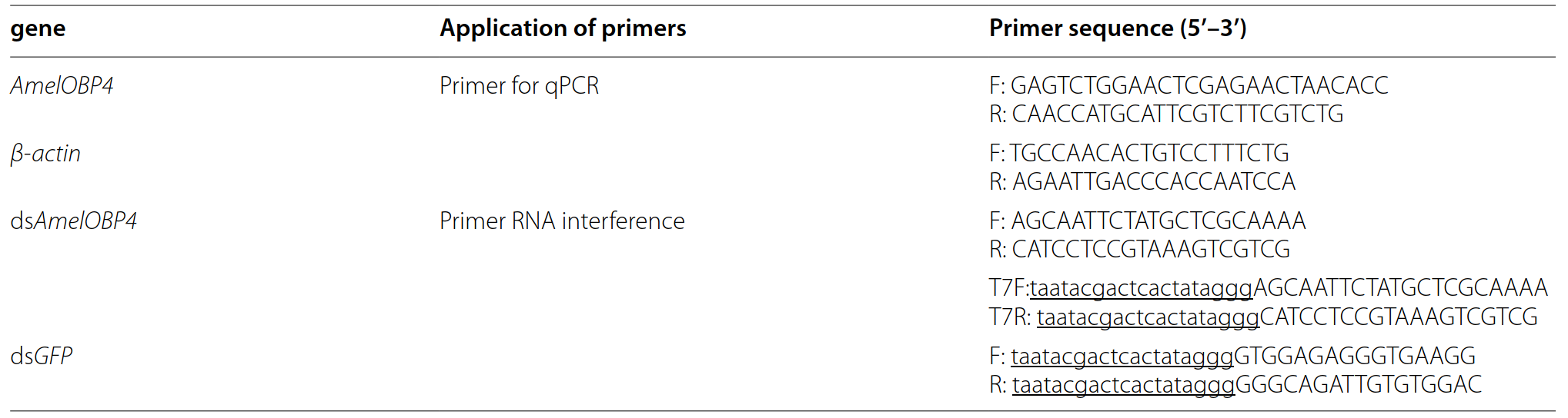 Область научных интересов: генетика, молекулярная биология, энтомология, популяционная генетика. Способность связывать запах с условиями пространства и времени обеспечивает фуражирующим насекомым важное эволюционное преимущество в поддержании жизнедеятельности семьи. Особенно развитые механизмы восприятия запахов сформировались у медоносных пчел (Apis mellifera). Они являются удобной моделью для изучения роли запах-связывающих белков (OBP) в обонятельном поведении, поскольку соединяют большое разнообразие поведенческих адаптаций с относительной простотой нейрональной архитектуры и умеренным по размеру геномом (Liu et al., 2025). Обоняние определяет важные аспекты фуражировочного поведения социальных насекомых. В этом важную роль играют OBP — белки, выступающие посредниками между летучими молекулами и обонятельными нейронами (Liu et al., 2025). Они способны избирательно связывать летучие молекулы и доставлять их к рецепторам обонятельных нейронов. В обществе медоносных пчел внимание к отдельным генам, таким как AmelOBP4, дает возможность понять, как химическая коммуникация адаптируется к социальным функциям. Показано, что AmelOBP4 экспрессируется на более высоком уровне в антеннах и у пчел-нянек, и у фуражиров, что подчеркивает его универсальное участие в восприятии запахов независимо от возраста и кастовой специализации (Liu et al., 2025). Эти белки не ограничиваются ролью транспортеров: они способны модифицировать сенсорную чувствительность и влиять на сложные формы поведения, от выбора кормовых источников до реакции на феромоны расплода. Обоняние включает несколько этапов, в процессе которых происходит захват молекул, преобразование химического сигнала в электрическую активность и формирование поведенческого ответа (Wilson & Mainen, 2006). OBP расположенны в лимфе сенсилл хеморецепторных органов (Pelosi et al., 2014), в которых они активируют специализированные нейроны (Pophof, 2002). Они доставляют летучие вещества к специфическим рецепторам (OR), инициируя поведенческие реакции (Fan et al., 2011; Leal, 2013). Мутации в OBP могут радикально менять поведение. Это подчеркивает многофункциональность OBP, которые оказываются не просто переносчиками, но частью сложной сенсорной системы. Медоносная пчела Apis mellifera традиционно используется для исследования механизмов поведения, нейробиологии и молекулярной генетики (Mogily et al., 2020). Геном Apis mellifera содержит 21 ген OBP (Foret & Maleszka, 2006), преимущественно экспрессирующихся в сенсиллах антенн. Было установлено, что AmelOBP1 распознает феромон матки (Wu et al., 2022), AmelOBP2 и AmelOBP13 — разнообразные растительные летучие вещества (Briand et al., 2001; Iovinella et al., 2011), а AmelOBP14 — главным образом терпеноиды (Spinelli et al., 2012). Экспрессия AmelOBP4 заметно выше в головах пчел-фуражиров, чем у пчел-нянек, независимо от возраста (Liu et al., 2019), что указывает на связь между экспрессией гена и разделением труда. В рамках рассматриваемого исследования был выполнен филогенетический анализ и охарактеризованы тканевые и возрастные профили экспрессии AmelOBP4 у пчел. Затем при помощи RNA-интерференции (RNAi) снижали уровень экспрессии AmelOBP4, оценивая изменения реакции на сахар и на панель запаховых стимулов. Эти подходы позволяют выявить консервативные механизмы сенсорной пластичности. Таблица 1. Праймеры, использованные в этом исследовании для синтеза двухцепочечной РНК гена AmelOBP4 и количественной полим