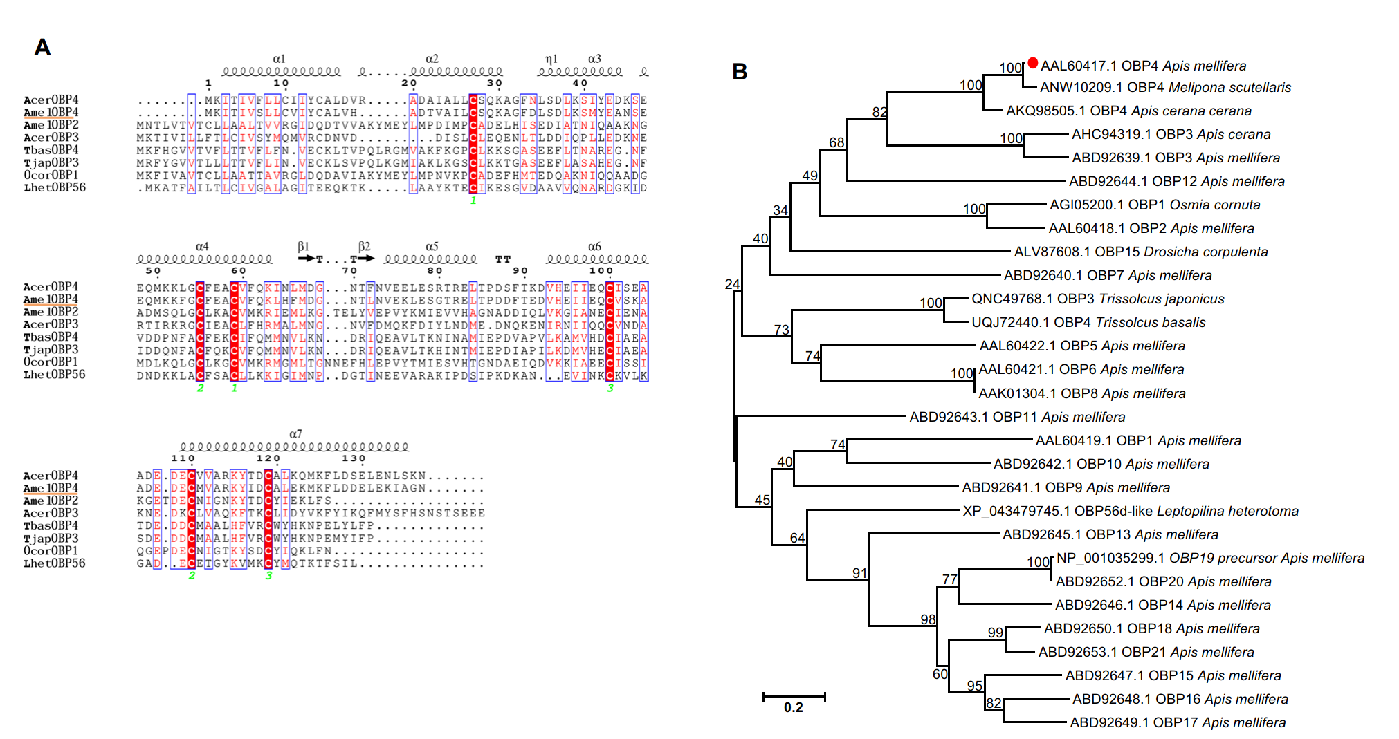 AmelOBP4: an antenna-specific odor-binding protein gene required for olfactory behavior in the honey bee (Apis mellifera). Frontiers in Zoology, 2025;